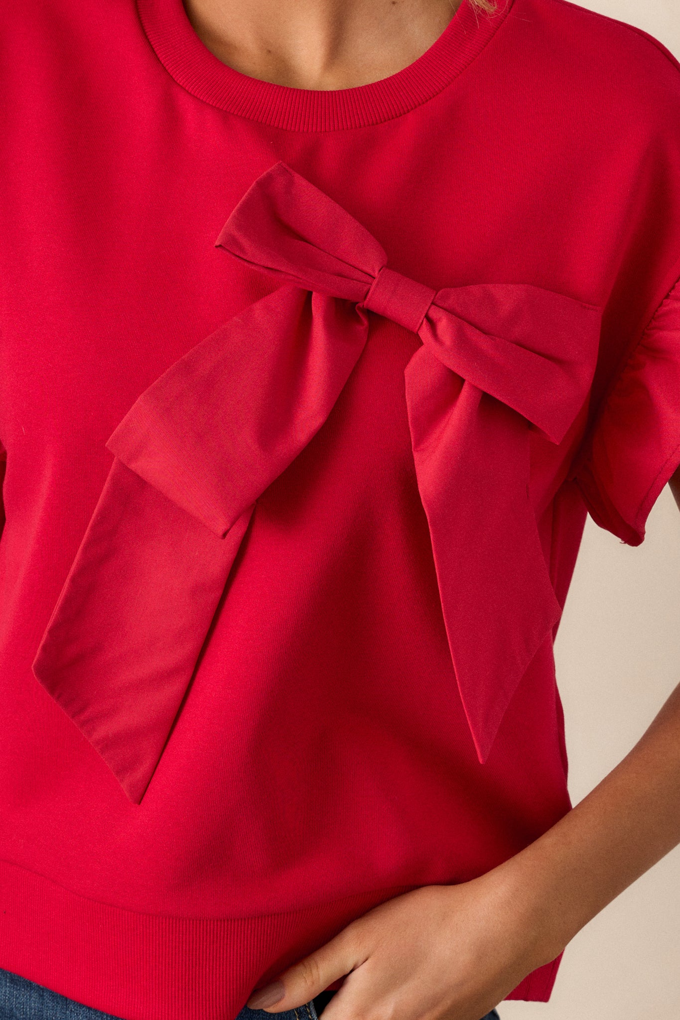 Can't Stop Me Red Ruffle Sleeve Bow Top
