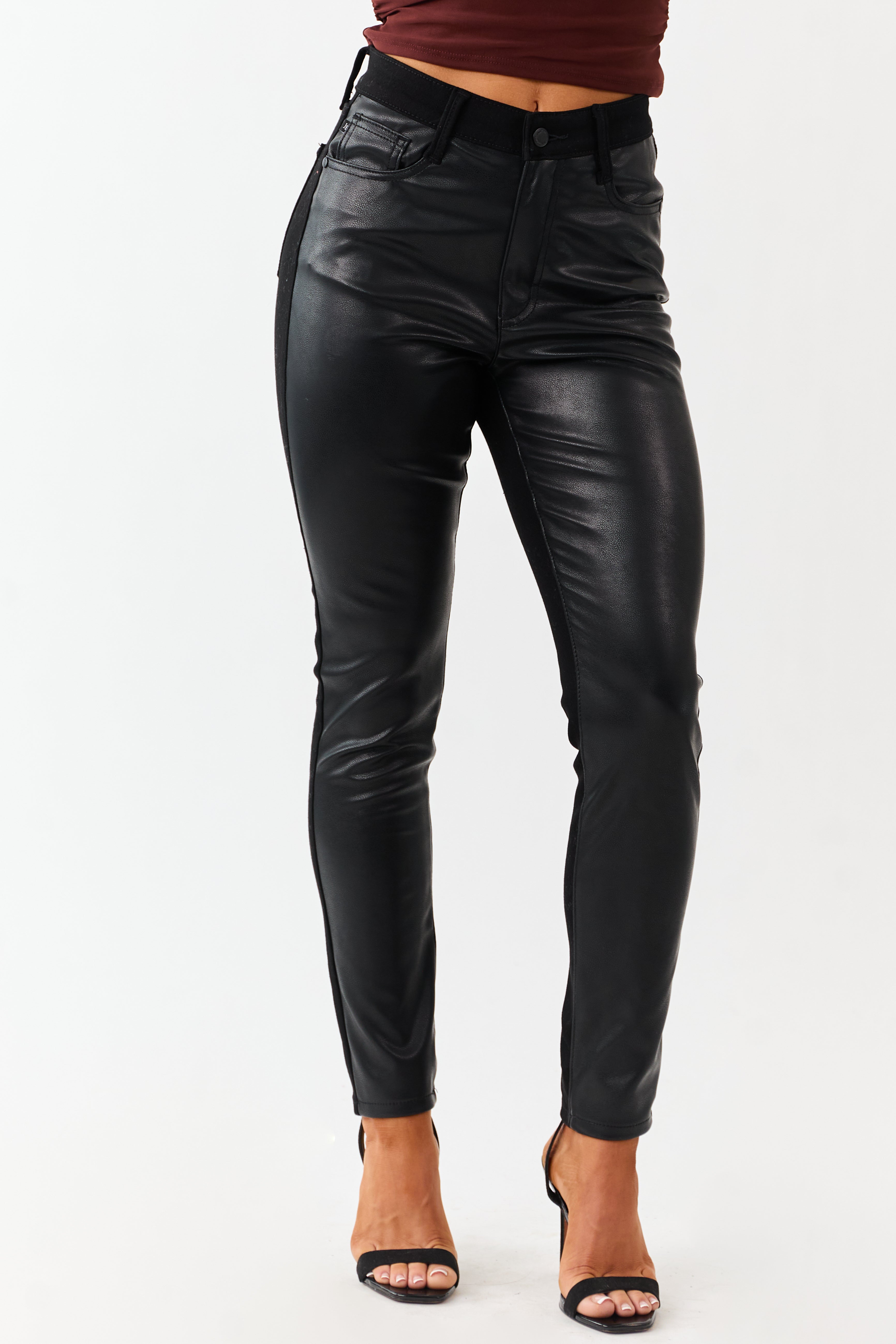 Judy Blue Black Faux Leather Denim Skinny Jeans