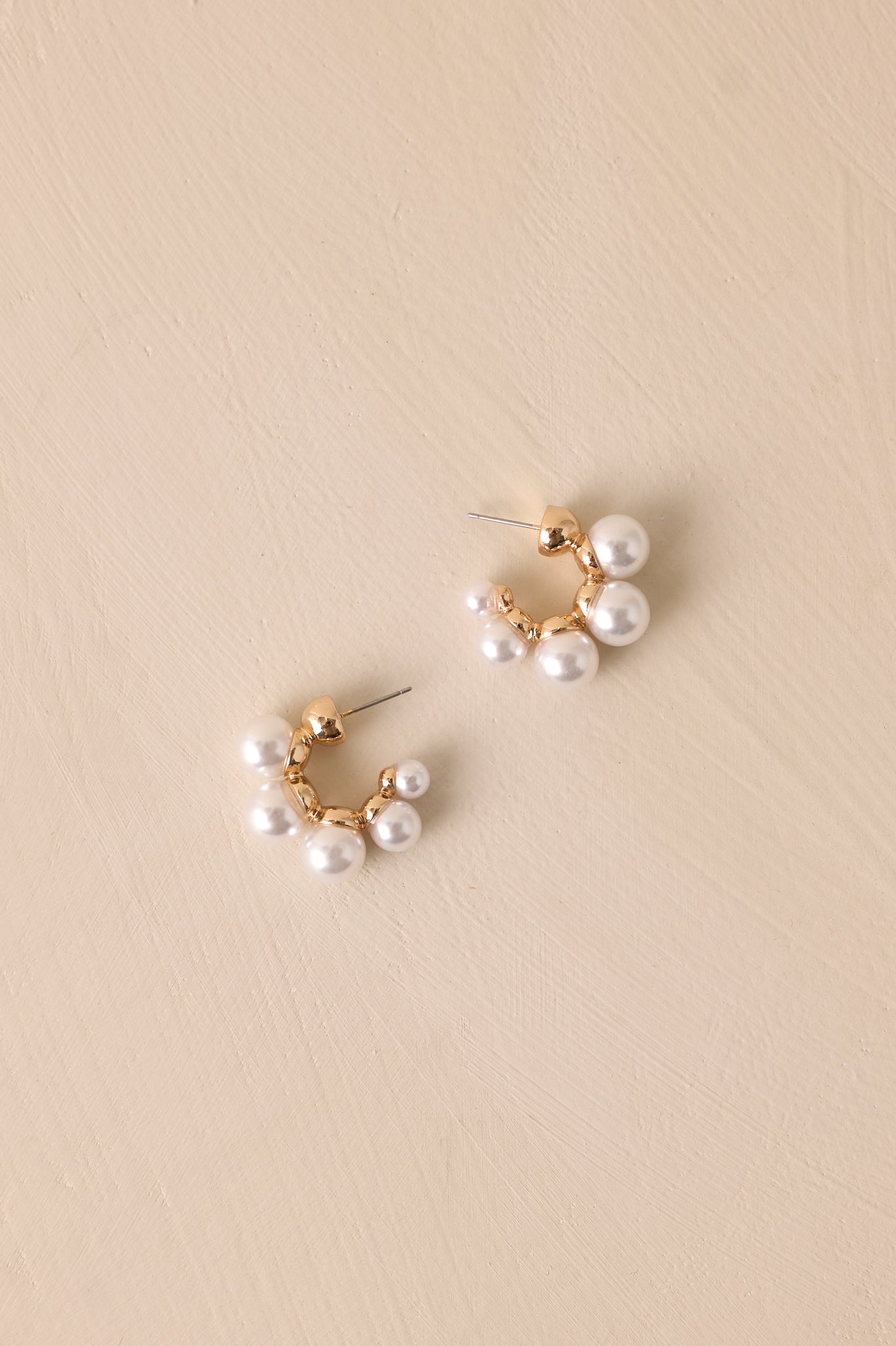 As Time Goes By Gold Faux Mini Pearl Lined Hoops