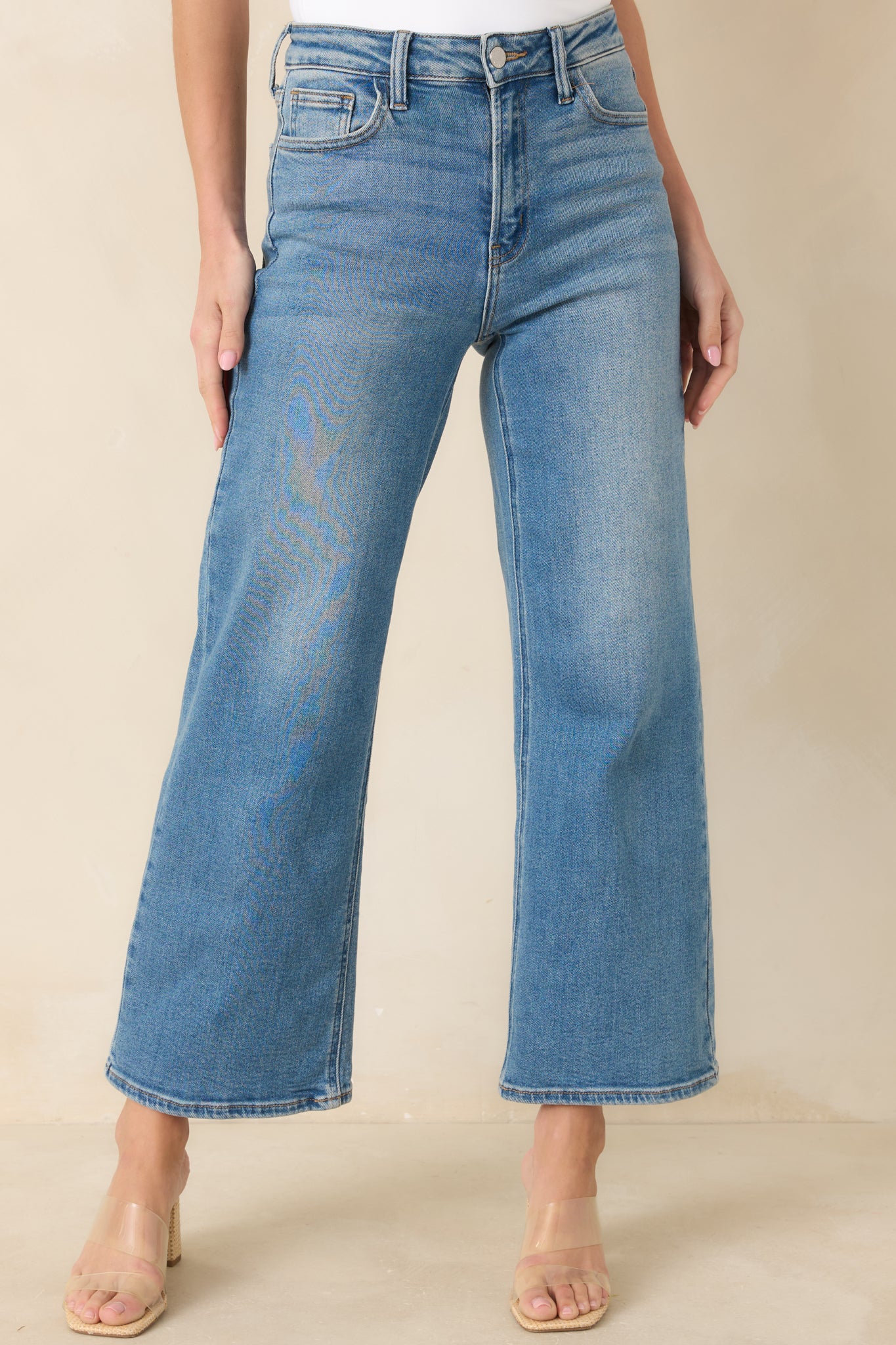 Into The Clouds Medium Wash Cropped Wide Leg Jeans