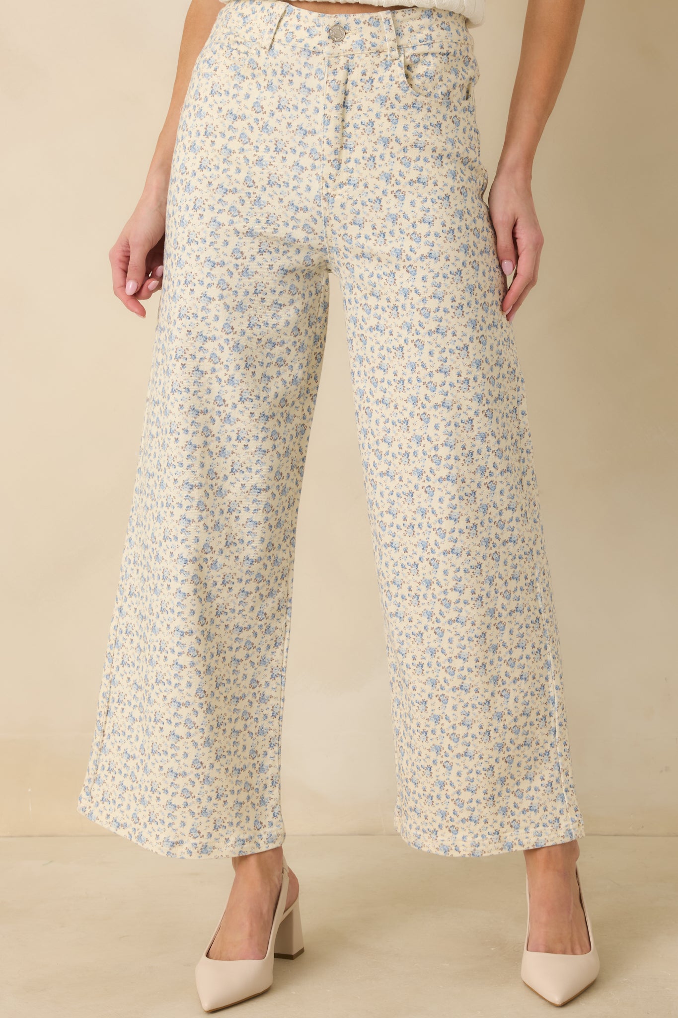 Easy Moments Light Blue Floral Cotton Wide Leg Jeans