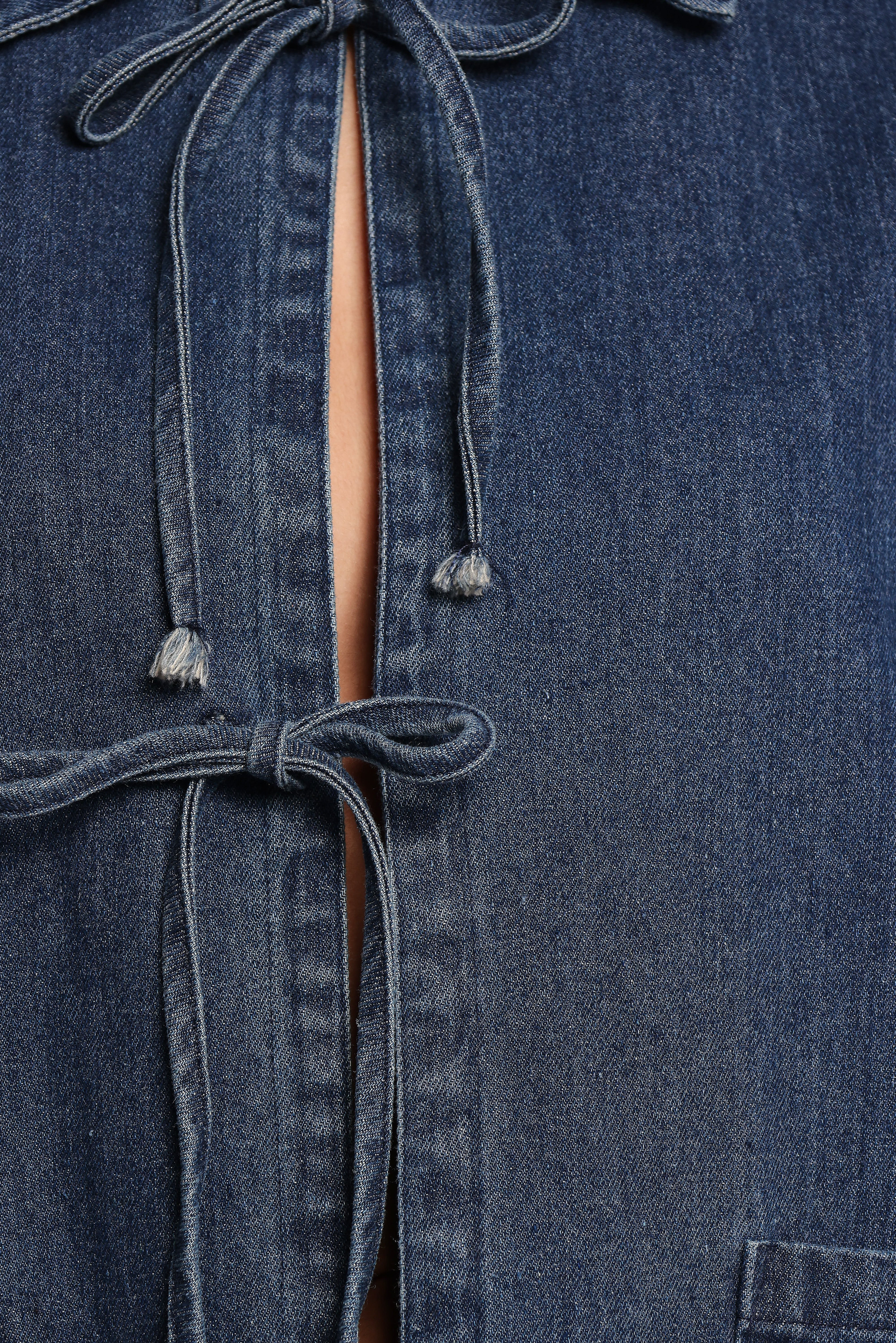 Upgrade your wardrobe with the effortlessly stylish Avon Bow Front Denim Shacket. Featuring a spread collar and long sleeves. this versatile piece is your go-to for laid-back layering or creating a chic. curated vibe.