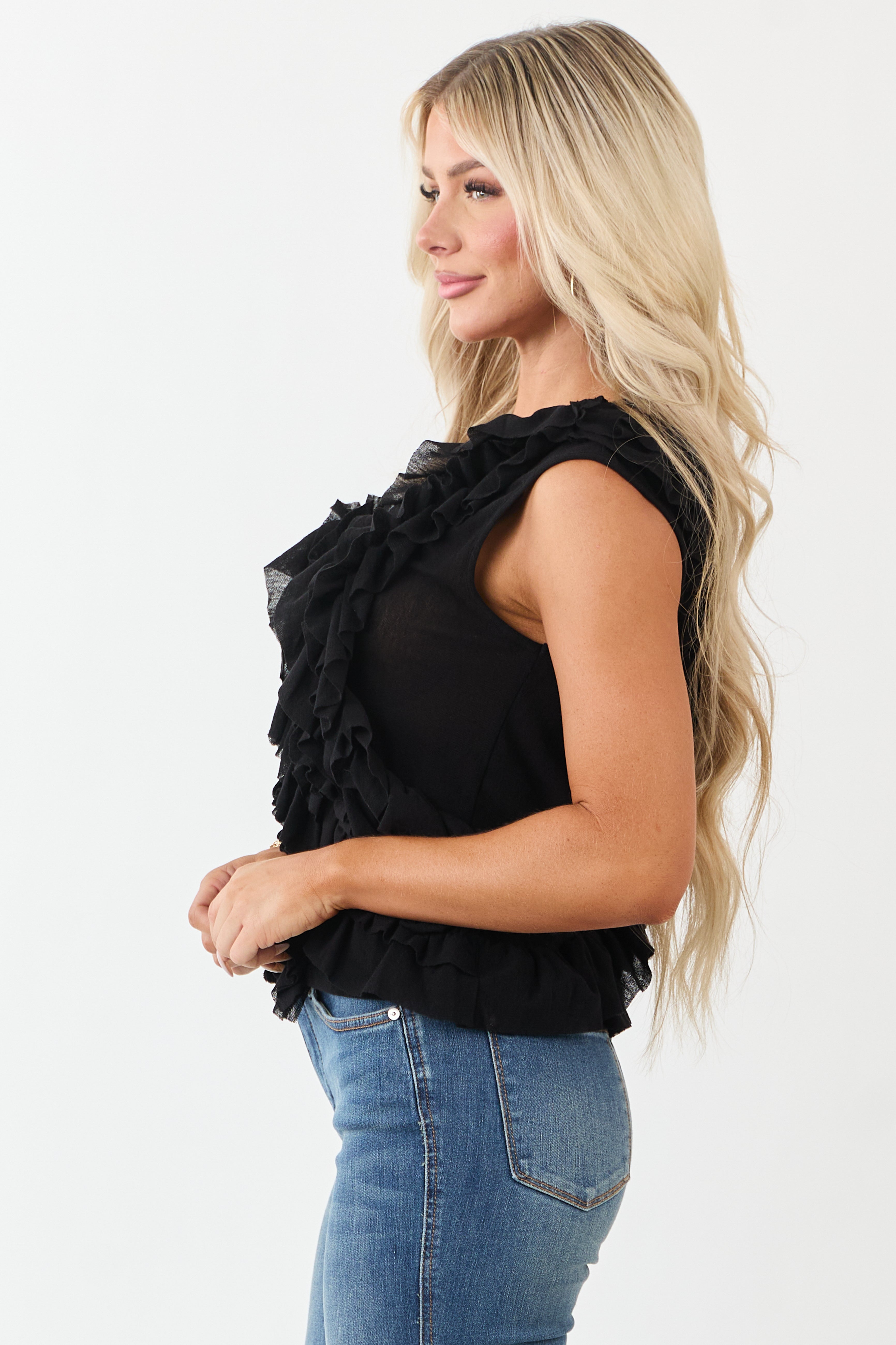 - This flirty tank is finished with cascading ruffles for a modern twist on a classic.
