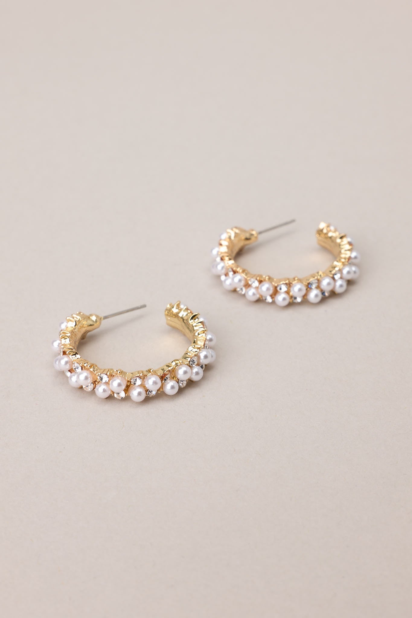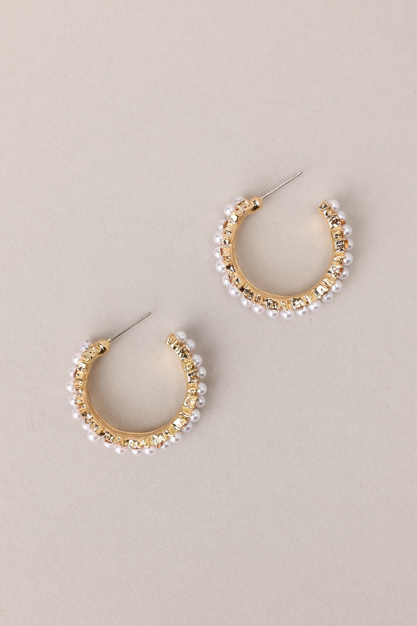 Add a touch of Ethereal Elegance with our Pearl Hoop Earrings! With a timeless pearl design and a unique hoop shape. these earrings are the perfect accessory for any occasion. Upgrade your look (and your mood) with these essential earrings. Don't miss out. grab yours today! These earrings feature gold hardware. faux pearls. rhinestones. and secure post backings.