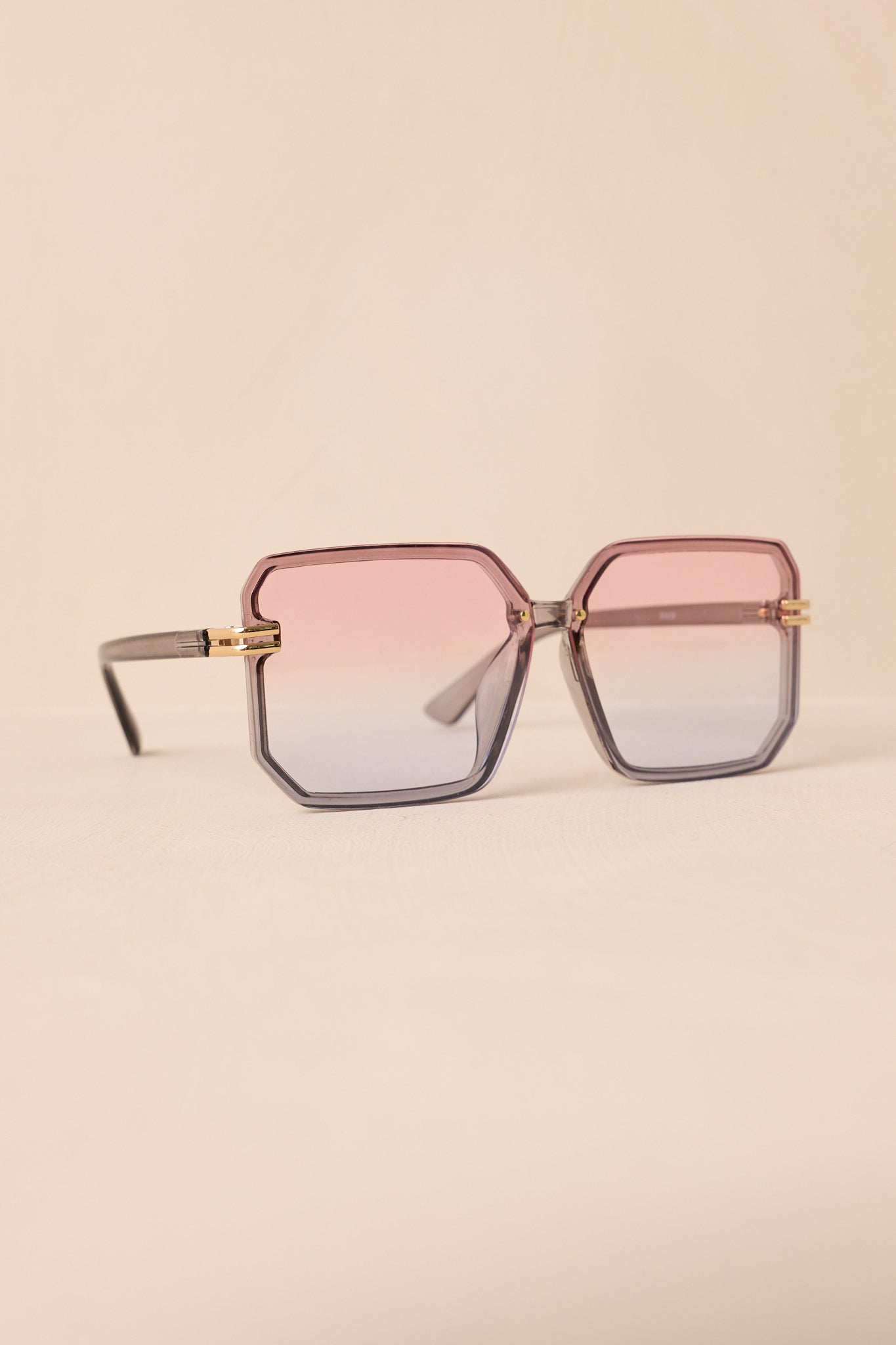 Elevate your style with our Glistening Lights Pink & Blue Square Sunglasses. These fashionable shades add an extra touch of dashing to any outfit. Look great and feel confident in these must-have sunglasses. These sunglasses feature a pink to blue ombre square frame and lenses. a slim nose piece. and gold accents on the sides of the frames.