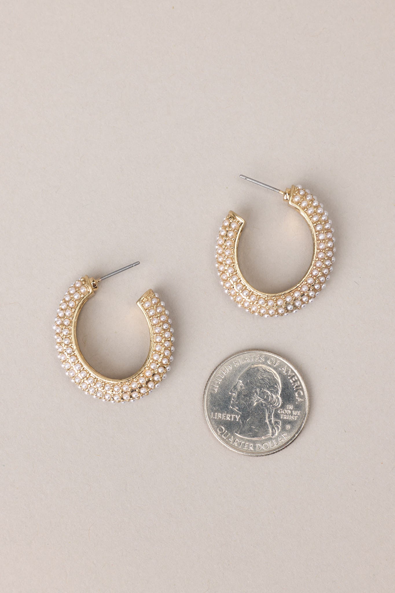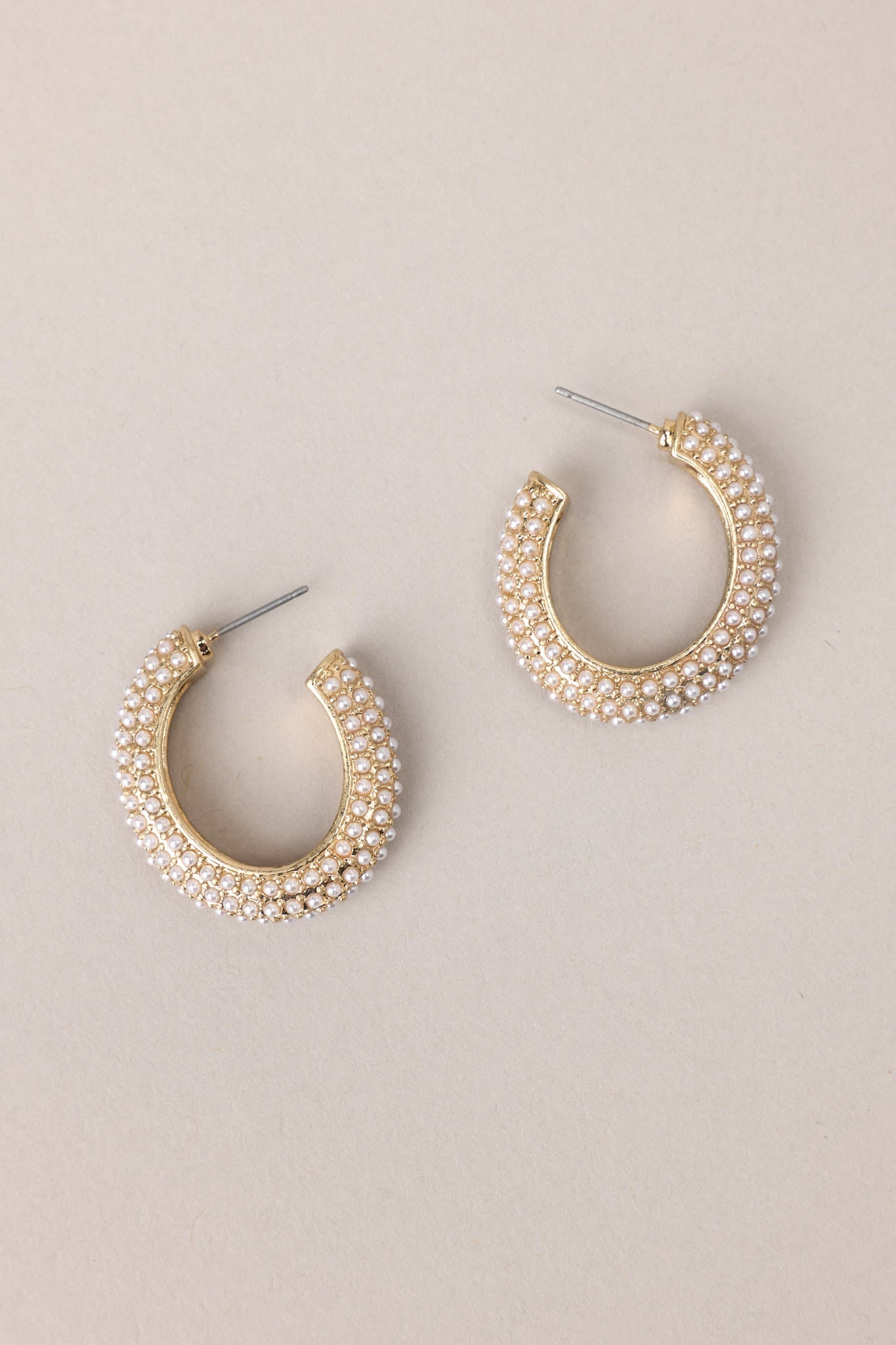 Dress up your look with a touch of playful elegance with our Golden Sands Pearl Hoop Earrings. These unique earrings feature lustrous pearl accents. adding a touch of sophistication to any outfit. Perfect for adding a little fun to your everyday look. These gold earring feature gold hardware. rows of faux pearls. an open hoop design. and secure post backings.