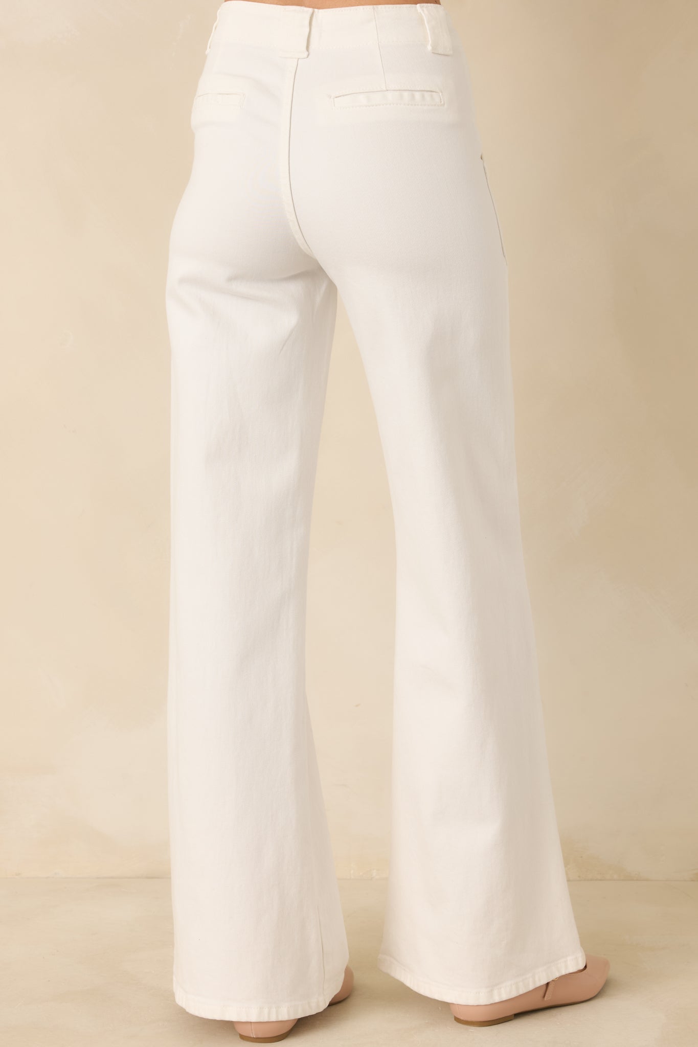 Step into ultimate comfort and style with our Hazy Days White Wide Leg Jeans. These jeans feature a relaxed fit and wide leg design. perfect for a carefree and playful look. Whether you're lounging or out on the town. these jeans will keep you looking effortlessly cool. These white jeans feature a high waisted design. classic button & zipper closure. belt loops. functional front patch pockets. and a flare leg.