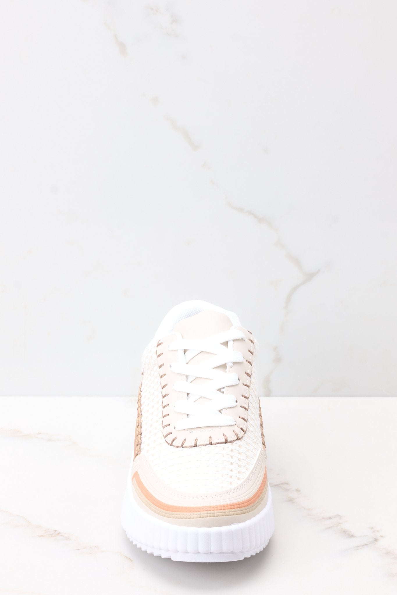 Step up your style with these iconic beige platform sneakers! Made for walks on the wild side. they offer a classic look with a touch of edge. Comfort and trendiness all in one! These shoes feature functional laces. knitted detailing throughout. a comfortable fit. and a thick sole. These shoes run true to size.