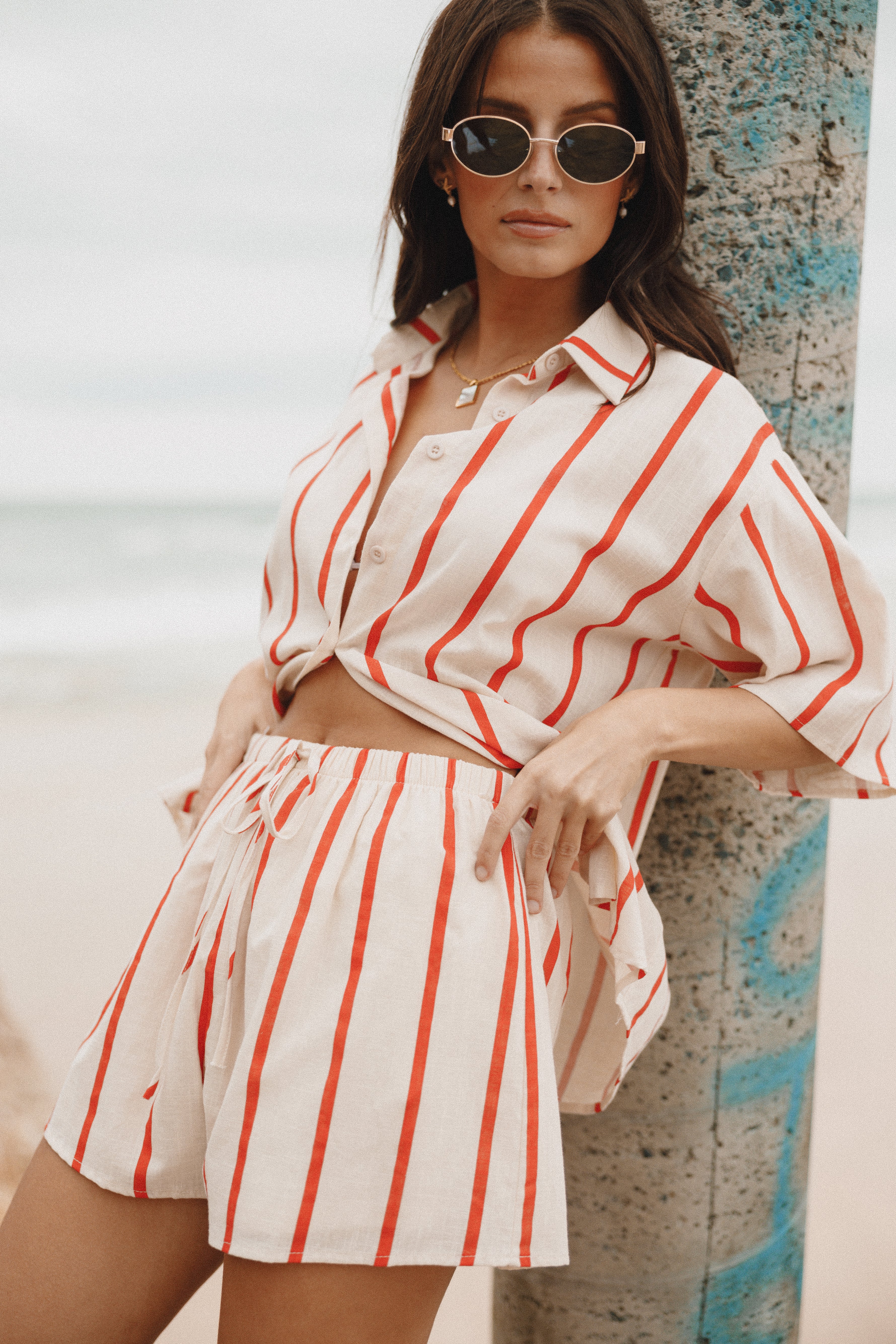 Featuring a spread collar top and high waisted shorts with an elasticised waist band. this look is perfect for any occasion. The top has a v-neckline and short sleeves along with a front functional button close for added convenience.