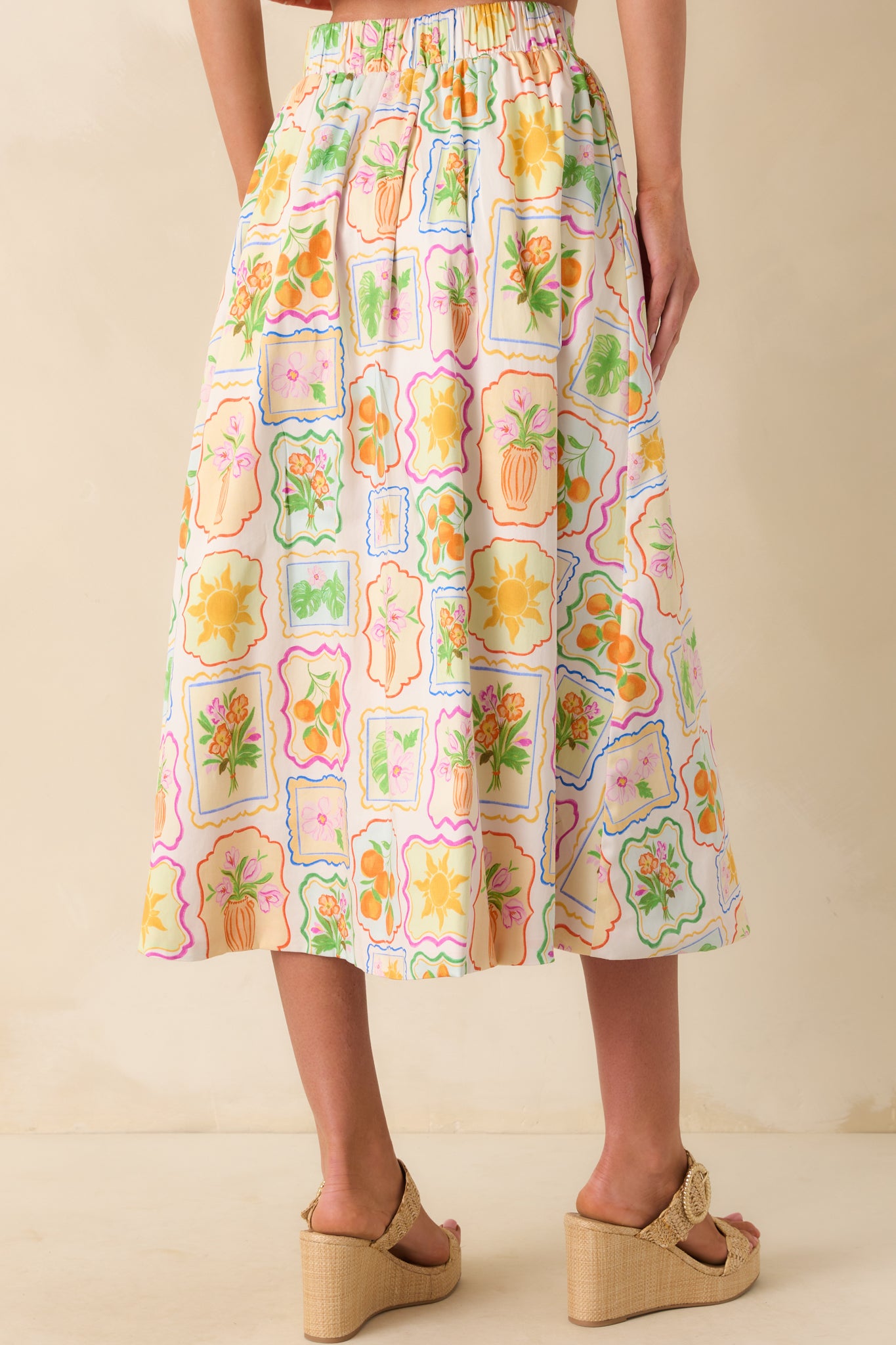 The Prosperina Maddie Multi Print Cotton Reversible Midi Skirt is for the moments that shift and surprise you. Quietly playful and endlessly wearable. it's made to move with you—wherever your day decides to go. This reversible midi skirt features an exclusive Prosperina peach patchwork print on one side. peach & ivory polka dot print on the other. a back elastic waist. and functional pockets.