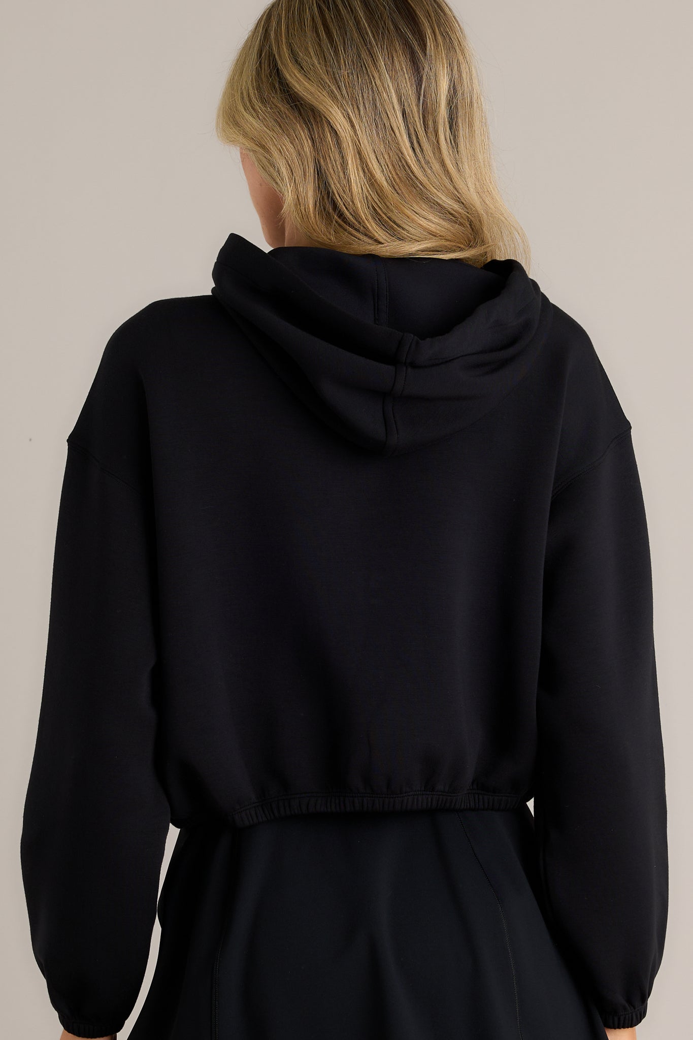 Get ready to cinch in your style with the SPANX® AirEssentials Black Cinched Hoodie. This versatile hoodie features a cinched waist for a figure-flattering silhouette. Plus. the lightweight and breathable fabric will keep you feeling cool and comfortable. Perfect for adding a touch of style to any outfit. This black hoodie features a high neckline. a slightly cropped design. an elastic hem. a draw cord. elastic cuffed sleeves and a finely knit fabric.