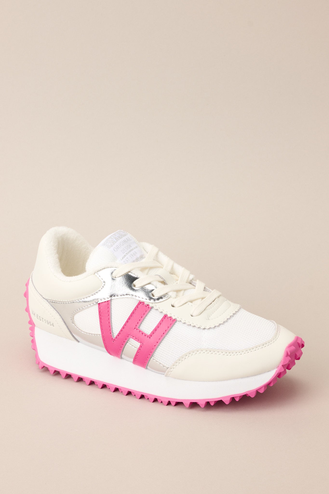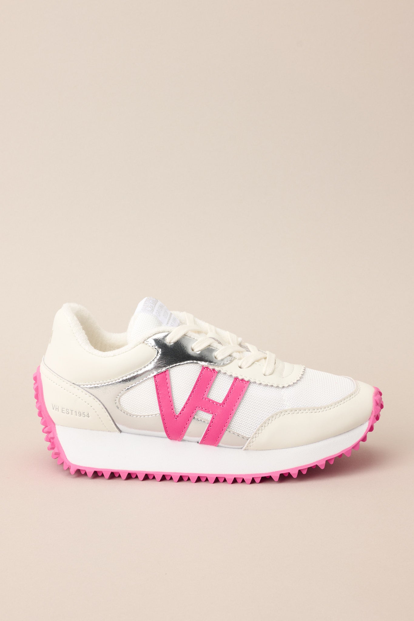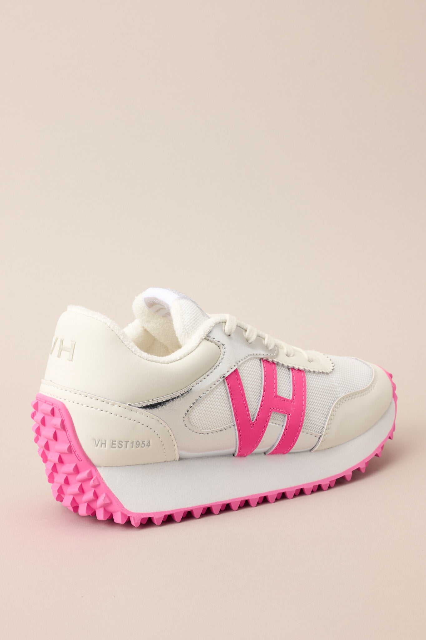 Step up your shoe game with these vintage Havana Cosmic 7 Neon Pink Pop Sneakers. With a classic design and a playful pop of neon pink. these sneakers will elevate any outfit. Perfect for a day out. these sneakers are comfortable. stylish. and out of this world. These sneakers feature a rounded toe. functional laces. subtle pops of color. a slight platform. and a heavily textured sole.
