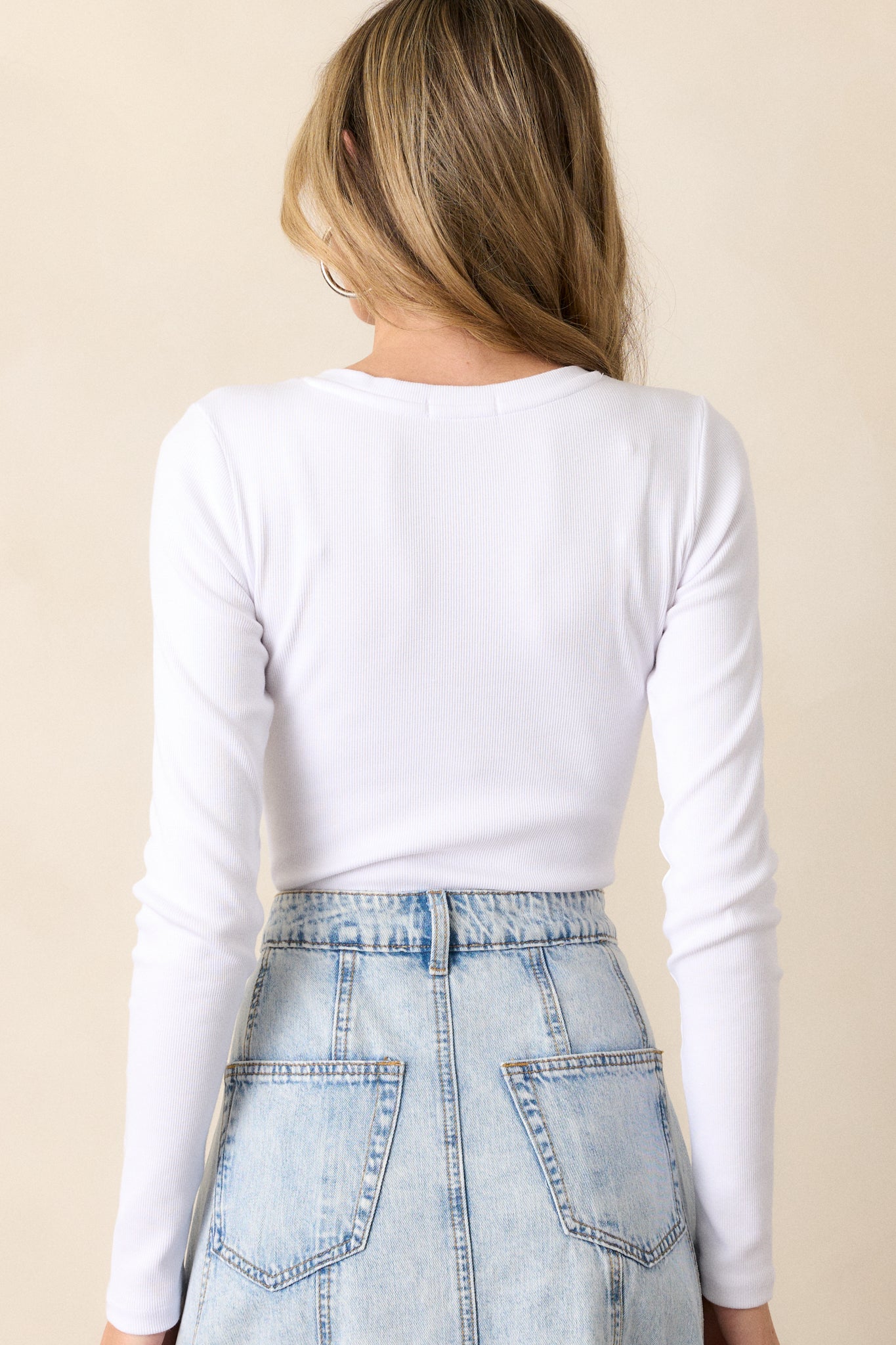 Elevate your style game with the Z Supply Samara Rib Henley White Long Sleeve Bodysuit! This white top is the perfect addition to your wardrobe. providing endless versatility and style. With its ribbed texture and comfortable fit. you'll look and feel your best all day long. Upgrade your look today! This white henley bodysuit features a fitted ribbed fabric throughout. a functional button front v-neckline. and snap button closures.